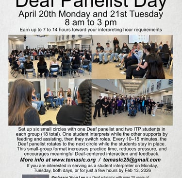 Participating in this event is more than just a volunteer opportunity—it is a chance to strengthen community ties and grow professionally. You will have the opportunity to network with local Deaf leaders and fellow interpreting colleagues while refining your skills in a dynamic panel format. By lending your hands and voice, you are making a tangible difference, ensuring that the Deaf community’s voices are heard accurately and with the respect they deserve by students who are passionate about the language and culture.